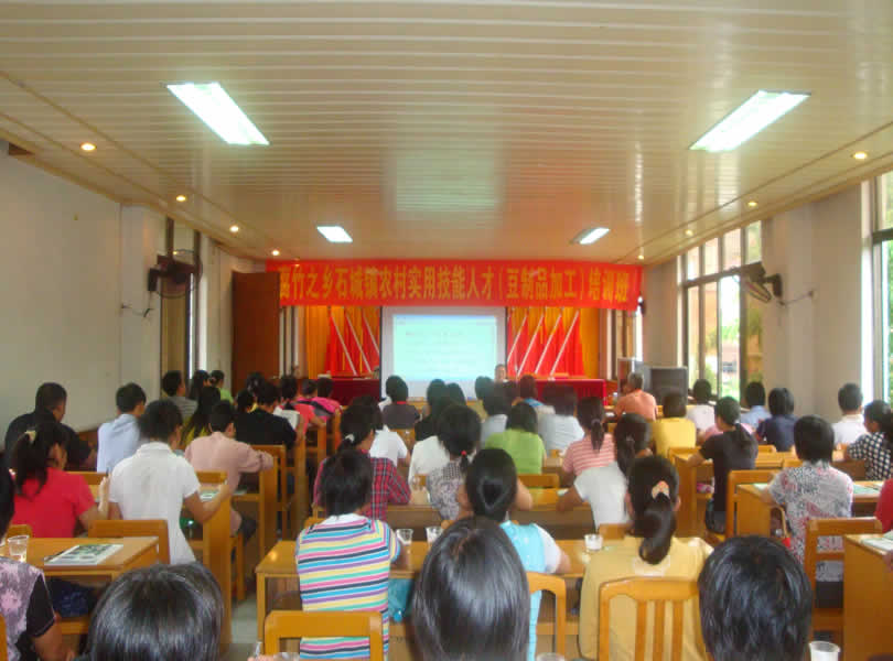为响应国家有关农村劳动力转移政策,充分发挥云安县“一网三中心”的职能, 使群众学习先进腐竹生产技术,改善传统腐竹工艺,提高生产效率,增加收入,树立品牌意识,同时加强农民食品安全意识,使石城镇托洞腐竹真正地“走出去”, 6月25日 ,市劳动力培训中心联合我镇劳动力培训中心举办了"第二期腐竹之乡石城镇农村实用技能人才(豆制品加工)培训班"。